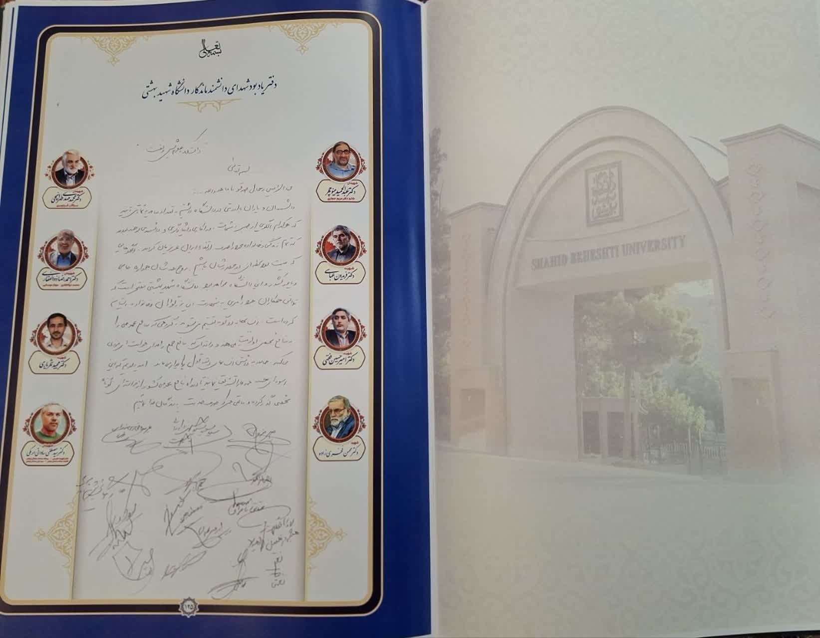 دانشگاه شهید بهشتی مفتخر است که تلاش همکاران خود را مزین به شهادت این بزرگواران و خانواده ایشان کرده است. انسانها به دو گونه تقسیم میشوند، گروهی که منافع عمومی را  به منافع شخصی اولویت میدهند و دسته ای که منافع جمع را فدای خواستهای فردی میکنند. جامعه به داشتن انسانهای گروه اول پایدار میماند. امیدواریم که این اسوه های حسنه همه ما را تشویق نمایند تا در راه منافع عمومی کشور از خواسته های کوتاه شخصی گذر کرده و مابقی عمر را صرف خدمت به بندگان خدا نماییم.